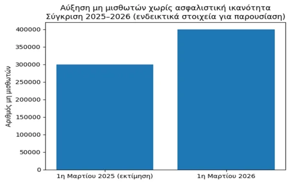 Άρα, το γράφημα απεικονίζει μια αύξηση κατά ~100.000 μη μισθωτούς που δεν έχουν ασφαλιστική ικανότητα από το 2025 στο 2026.