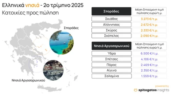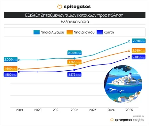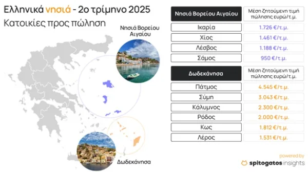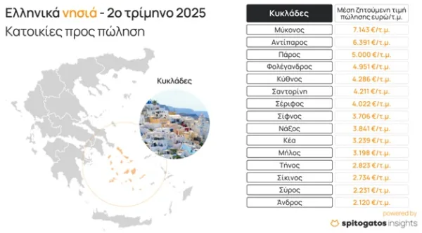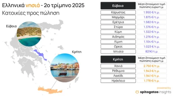 Ο Spitogatos και το SpitogatosInsights εστιάζουν τόσο στα ελληνικά νησιά όσο και στην εξέλιξη των μέσων ζητούμενων τιμών (ΜΖΤ) πώλησης κατοικιών.