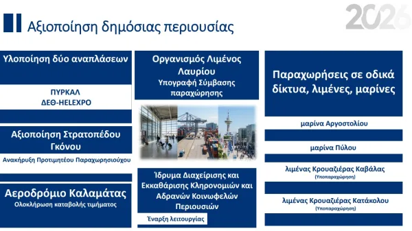 Στην πλήρη χαρτογράφηση των μεγάλων πρωτοβουλιών, μεταρρυθμίσεων, αλλά και έργων για το τρέχον έτος προχώρησε η κυβέρνηση -και εν είδει δέσμευσης προς τους πολίτες όπως πολλάκις αναφέρθηκε- μέσω της συνέντευξης Τύπου που έδωσαν ο αντιπρόεδρος της κυβέρνησης, Κωστής Χατζηδάκης, ο υπουργός Επικρατείας, Άκης Σκέρτσος, ο υφυπουργός παρά τω πρωθυπουργώ, Θανάσης Κοντογεώργης και η γενική γραμματέας Συντονισμού, Εύη Δραμαλιώτη. Τίτλος της συνέντευξης ήταν: «Απολογισμός κυβερνητικού έργου για το 2025 – Ενοποιημένο σχέδιο κυβερνητικής πολιτικής 2026».